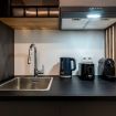 Este estudio privado de uso individual dispone de una cama premium de 120 cm, zona de descanso con mesita y kitchenette privada totalmente equipada (fregadero, frigorífico, placa vitrocerámica portátil, campana extractora, horno-microondas, tostadora, cafetera y hervidor), además de baño privado. Está completamente amueblado e incluye aire acondicionado frío/calor, cerradura electrónica, amplios espacios de almacenamiento, Wi-Fi de alta velocidad y un escritorio amplio ideal para estudiar o trabajar. Incluye ropa de cama y toallas.