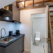 Este estudio privado de uso individual dispone de una cama premium de 120 cm, kitchenette privada totalmente equipada (fregadero, frigorífico, placa vitrocerámica portátil, campana extractora, horno-microondas, tostadora, cafetera y hervidor) y baño privado. Está completamente amueblado e incluye aire acondicionado frío/calor, cerradura electrónica, amplios espacios de almacenamiento, Wi-Fi de alta velocidad y un escritorio amplio ideal para estudiar o trabajar. Incluye ropa de cama y toallas. El alojamiento, recientemente reformado, cuenta con 5 estudios y modernas zonas comunes. Dispone de cocina compartida totalmente equipada, además de lavadora, secadora, lavavajillas y plancha. También ofrece gimnasio, aparcamiento interior para bicicletas y patinetes, baño de cortesía, patio común con zona de descanso y comedor compartido. Ofrecemos servicio de atención al estudiante multilingüe 24/7.